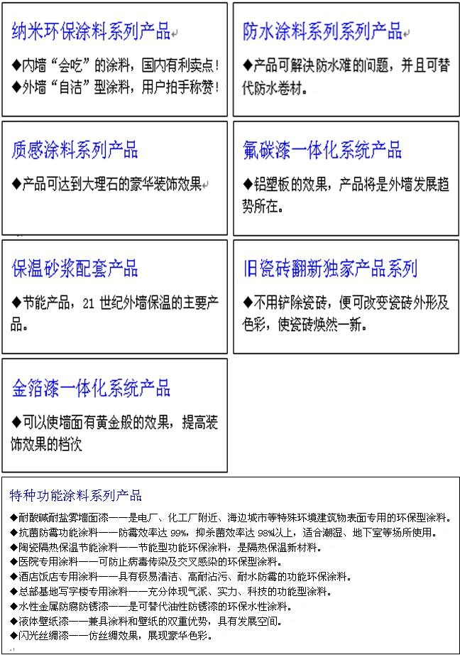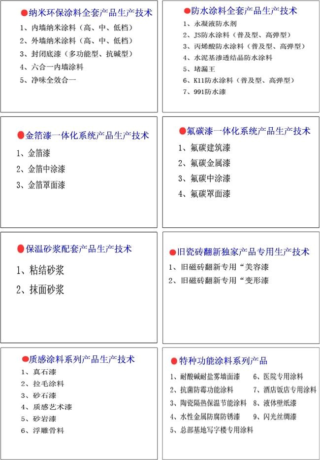 ◆ 公司終身免費給轉(zhuǎn)讓出的涂料技術(shù)改進(jìn)升級,確保合作者的涂料技術(shù)配方永遠(yuǎn)處于高新技術(shù);