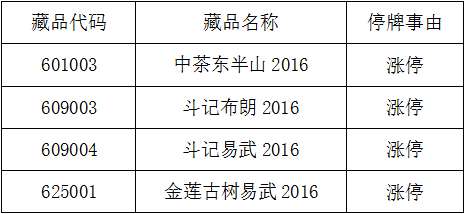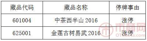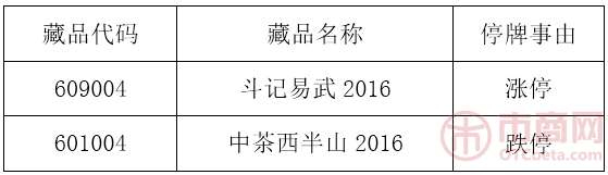 20170110關(guān)于《中茶西半山2016》等藏品停牌公告