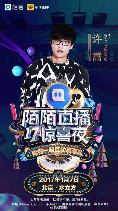 音樂才子許嵩登臺獻藝 陌陌直播17驚喜夜即將隆重啟幕