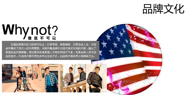 特有的品牌文化:與狼共舞品牌是一個(gè)代表年輕時(shí)尚、激情活力的休閑品牌,演繹的是現(xiàn)代人勇于突破自身局限、敢于嘗試新觀念的生活態(tài)度。以簡約、時(shí)尚、活力為靈魂,傳遞著美國人文特色和流行時(shí)尚氣息,再現(xiàn)了人類對自由和自然的渴求。