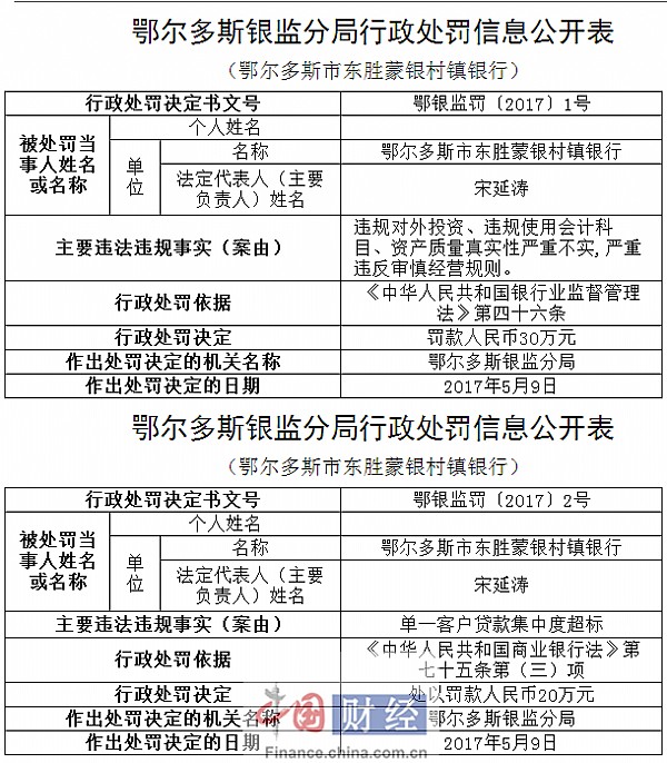 鄂爾多斯東勝蒙銀村鎮(zhèn)銀行因違規(guī)對外投資等被罰50萬元