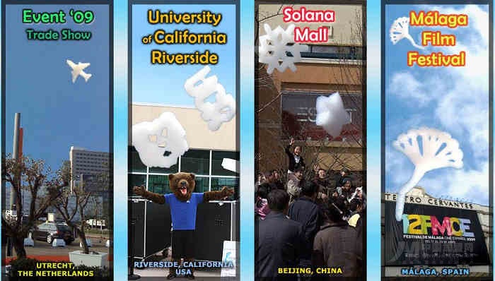 它能將水和氦氣的混合物,裁剪成各種形狀做種各種圖案,飄浮在空中,每7至15秒制造一個(gè)圖案,每個(gè)圖案可在,空中持續(xù)20分鐘后蒸發(fā),且無任何污染
