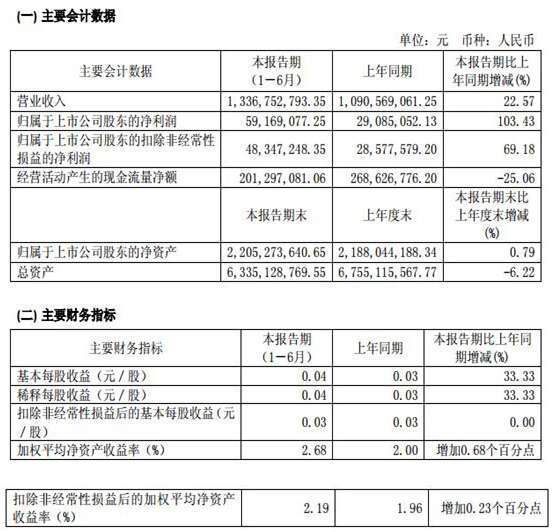 今日,江蘇紅豆實業股份有限公司公布了(以下簡稱紅豆股份)2016年半年度報告,公告顯示,公司凈利潤同比增長103.43%,營業收入同比增長22.57%。圖片源自《江蘇紅豆實業股份有限公司2016年半年度報告》據詳細信息顯示,紅豆股份上半年歸屬于上市公司股東的凈利潤為0.59億元,上年同期為0.29億元,同比增長103.43%;營業收入為13.37億元,上年同期為10.91億元,同比增長22.57%...