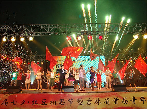 五星紅旗飄揚,大家一起為奧運加油,為中國加油古箏在吉林長春是非常大眾化的樂器,很多長春市民都會彈奏\u00A0\u00A0\u00A0\u00A0傳統七夕節(2008年8月7日)這一天晚上,長春市文化廣場歌聲陣陣,音樂滿天,到處可見心形的氣球、鮮紅的玫瑰,一盞盞心愿燈緩緩升起,這里真在舉辦第八屆七夕·紅豆情人節暨吉林首屆青年傳統文化節。首推七夕·紅豆情人節的周耀庭在這次活動中高興地說“紅豆集團原本...