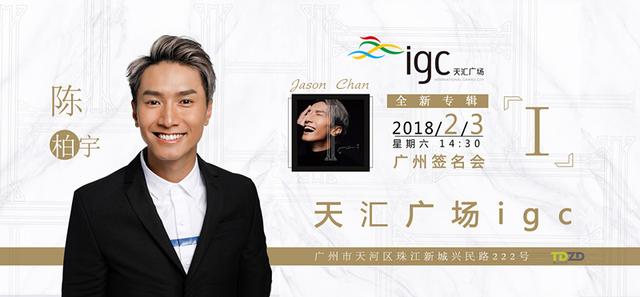 剛獲得《2017年叱咤樂壇流行榜頒獎典禮》叱咤樂壇男歌手銀獎及叱咤樂壇我最喜愛的男歌手兩個獎項的陳柏宇,將帶著新專《I》空降廣州天匯廣場igc舉行新專輯的簽售會啦!2月3日,讓我們一起感受至真我的Jason!全新大碟《I》零篩選,以歌曲自揭最真實一面,這是陳柏宇踏入歌唱生涯第11年,繼于2017年7月結婚成為人夫后,Jason再將于2017年12月踏足紅磡舉行首個紅館個唱,Jason人生中的每一個...