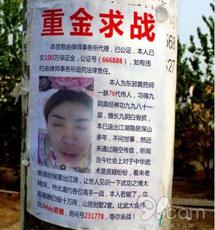 iMay女主播街頭發廣告宣戰徐曉冬 自詡會“九陰真經”