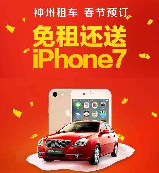春節租車贏iPhone 7 神州租車推三重優惠迎新春