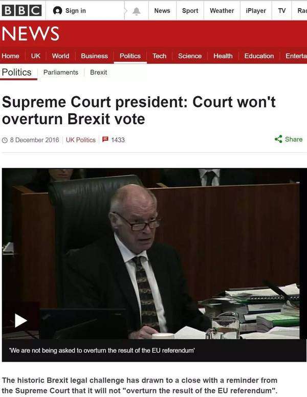 英倫News I 英國最高法院: 不會推翻“脫歐”公投結果