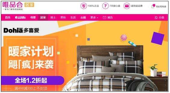唯品會多喜愛Dohia家紡專場 颶瘋來襲