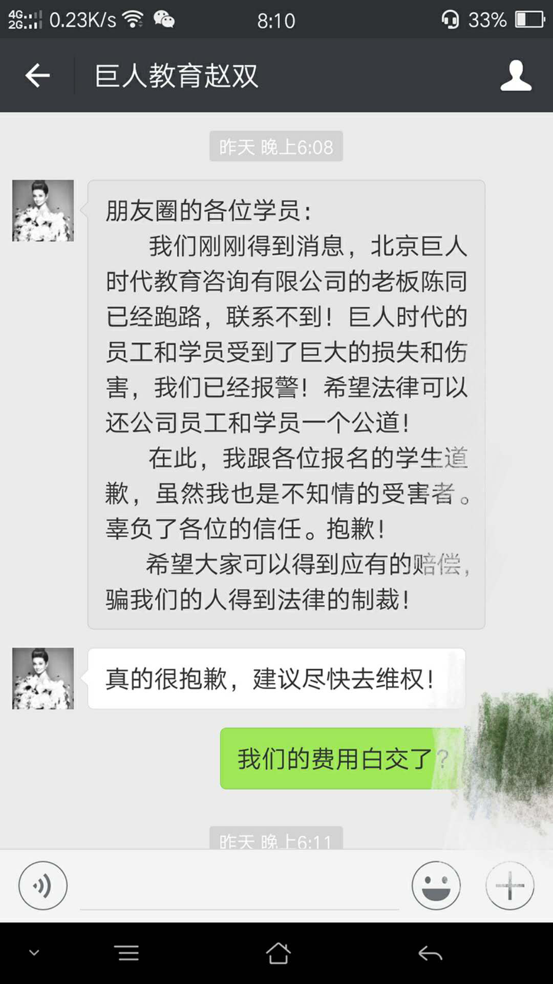 法制晚報(bào)訊(記者\(yùn)u00A0李陽(yáng)煜\u00A0朱健勇)\u00A0近日,有消息稱,巨人時(shí)代教育機(jī)構(gòu)老板跑路,培訓(xùn)點(diǎn)關(guān)門,多名在巨人時(shí)代教育機(jī)構(gòu)上課的學(xué)員組團(tuán)維權(quán)。今天上午,記者探訪巨人時(shí)代教育咨詢有限公司辦公地點(diǎn)發(fā)現(xiàn)確已無人辦公,多名學(xué)員前往警方報(bào)案。同時(shí),巨人學(xué)校發(fā)布聲明澄清與巨人時(shí)代教育機(jī)構(gòu)無關(guān)。探訪\u00A0\u00A0\u00A0巨人時(shí)代網(wǎng)點(diǎn)關(guān)閉\u00A0\u00A0門口貼出告示12月...