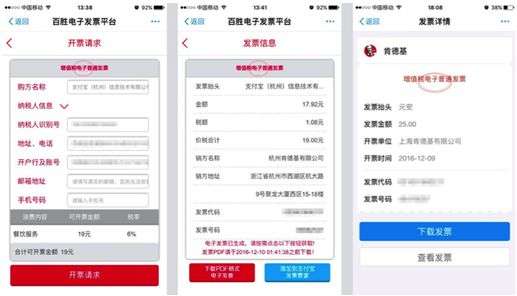 原標題:支付寶與百勝中國合作掃碼可開肯德基電子發(fā)票1月5日消息,記者近日從支付寶獲悉,支付寶已經(jīng)與百勝中國合作上線電子發(fā)票功能,百勝旗下的肯德基、必勝客、小肥羊、東方既白、必勝宅急送均可以使用。用戶在門店消費后,用支付寶掃描發(fā)票提取碼上的開票二維碼即可開具百勝電子發(fā)票。與目前市面上其他開具電子發(fā)票仍需要手動輸入發(fā)票抬頭不同的是,用支付寶開具電子發(fā)票,則省掉了這一步驟,大大節(jié)約了時間,也避免了輸入錯...