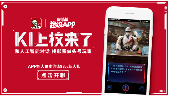 一直在制造驚喜給我們的肯德基上校,這次上線了人工智能“KI機器人上校”。當然我們都知道這個人設(shè)是虛擬的。但這次肯德基聯(lián)手科大訊飛,很認真的推出了這個來自肯德基“宇宙”的“KI上校”。據(jù)悉,人工智能“KI上校”,不僅可以完成引導(dǎo)用戶自助點餐、外送、跳轉(zhuǎn)商城等多種服務(wù)性的功能,更有趣的是,“KI上校”有著自己的“性格”體系,會用TA獨特的視角與用戶聊天,還有各種情緒的互動,彩蛋的鋪設(shè)等功能。在下個版本...