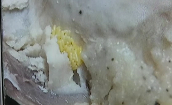 新藍(lán)網(wǎng)-中國藍(lán)新聞客戶端4月30日訊(浙江民生休閑頻道記者柴紫多)4月27號中午,寧波的尹先生定了幾桶肯德基套餐,其中一桶放到了傍晚吃,吃到一半,發(fā)現(xiàn)了一坨黃色的東西。尹先生通過手機(jī)下單,在寧波雅戈?duì)柎蟮揽系禄f成店,買了4個(gè)肯德基五一桶,花了380塊錢。他們一共十來個(gè)人,一點(diǎn)多的時(shí)候吃了其中三桶。尹先生:“這個(gè)最后一桶是開完會吃的,吃的時(shí)候,最后一塊吃的時(shí)候,發(fā)現(xiàn)蟲卵,我老婆手撕的時(shí)候,撕到了。...