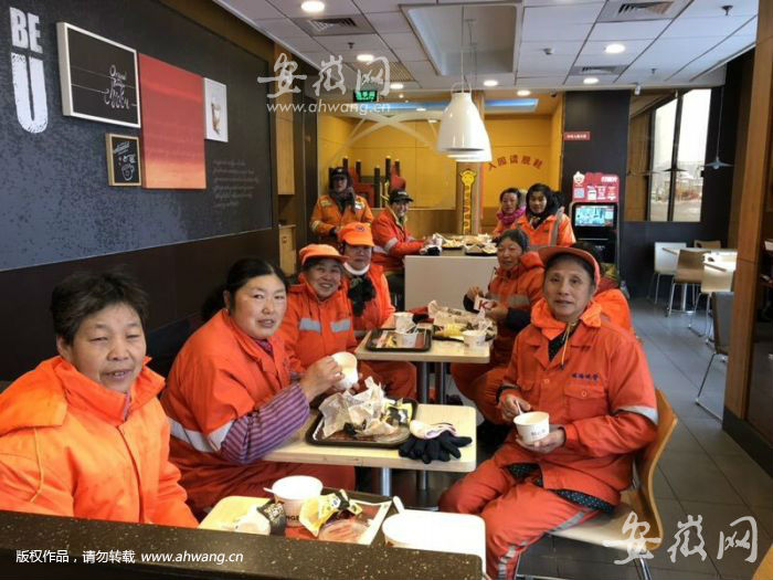 合肥環(huán)衛(wèi)工人今晨在肯德基免費吃早餐(圖)
