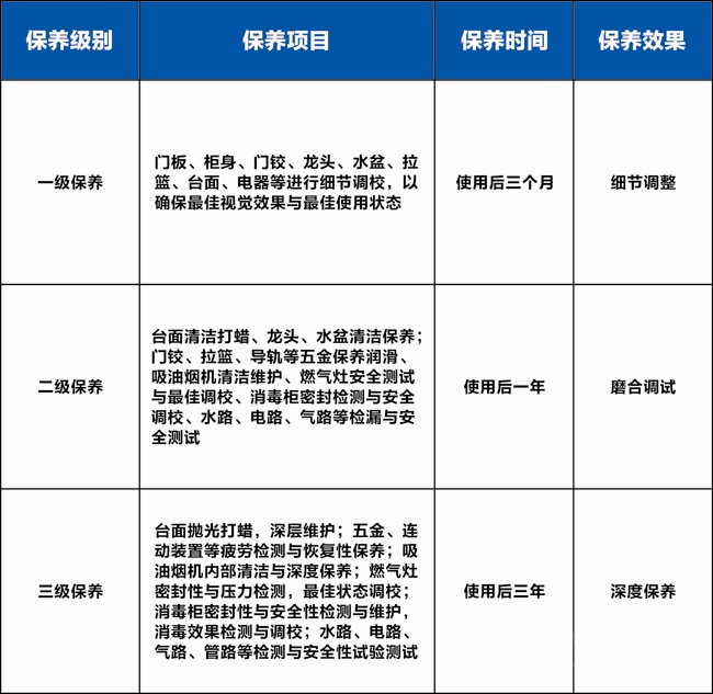 統(tǒng)一維修保養(yǎng):總部統(tǒng)一提供《藍谷第四代廚房使用手冊》,指導(dǎo)用戶正確使用和保養(yǎng)產(chǎn)品及售后解決方案