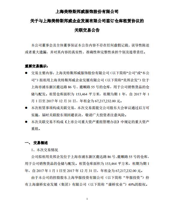 聯(lián)商首頁->資訊動(dòng)態(tài)->行業(yè)動(dòng)態(tài)->正文上海美特斯邦威發(fā)布公告6721.7萬租憑倉庫掃碼關(guān)注“服飾最干貨”,隨時(shí)隨地了解服飾動(dòng)態(tài)挖掘服飾連鎖企業(yè)之經(jīng)營秘訣近期推薦課程:《2017年3月歐洲商務(wù)學(xué)習(xí)和考察》《中國商業(yè)地產(chǎn)總裁班》美特斯邦威上海物流配送歡迎關(guān)注聯(lián)商網(wǎng),掃一掃關(guān)注【聯(lián)商網(wǎng)微信訂閱號(hào)】我們只為您推送最真實(shí),最有價(jià)值的行業(yè)資訊我要投稿換帥后的美邦終止2015年90億元定增想做什么2016-1...