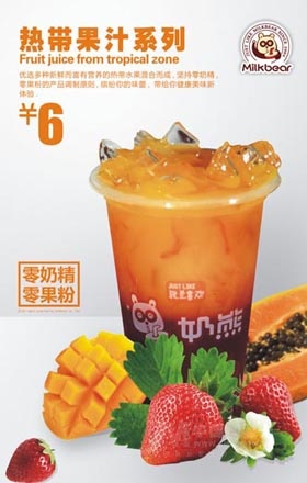 奶熊所有果飲均采用鮮果進(jìn)行調(diào)制。