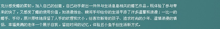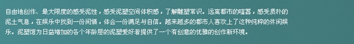 現(xiàn)代人喜歡標(biāo)新立異,與眾不同,他們不滿足于百貨公司里現(xiàn)成商品,對(duì)DIY經(jīng)濟(jì)消費(fèi)強(qiáng)烈需求,并成為人們新一代生活方式。與一般的傳統(tǒng)項(xiàng)目不同,手創(chuàng)館提倡“DoItYourself(DIY)”的新消費(fèi)理念,在這里你可以找到你喜愛的手工項(xiàng)目,將自己的創(chuàng)意變?yōu)楝F(xiàn)實(shí),體驗(yàn)創(chuàng)造的快樂,追求個(gè)性與心情表現(xiàn)。