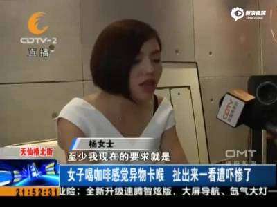 女子喝雀巢咖啡感覺異物卡喉看完嚇慘了向前向后女子喝咖啡覺異物卡喉扯出來瞧嚇一跳市民楊女士在便利店買了一瓶咖啡,喝了幾口感覺又異物卡在了喉嚨于是就用手去扯,扯出來的東西,讓她大吃一驚!...