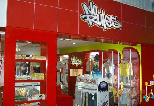 No Rules 創(chuàng)于1994年澳大利亞,至今已有14年的品牌歷程。現(xiàn)在,在北美、歐洲、日本和澳洲共有大小專柜2000多個,是一個專為五至十四歲的孩子們所設(shè)立的國際化品牌。