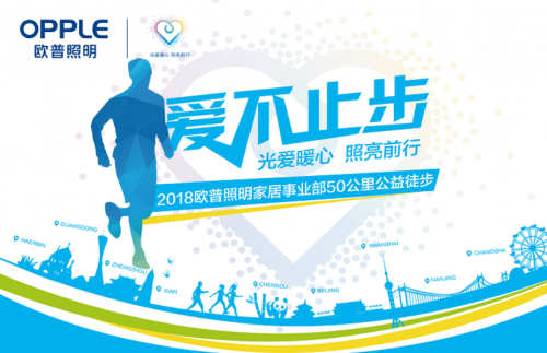 2018年4月11日,歐普照明#愛不止步#50公里公益徒步,全國九大城市同時聯(lián)動,近700名員工、經(jīng)銷商、供應(yīng)商等合作伙伴參與其中,在全天歷時近13個小時的公益徒步行動中,所有人累計(jì)徒步30218公里,41587686步。最終所走的每100步,將折合成人民幣3元,最終為山區(qū)學(xué)校及貧困家庭捐出等價(jià)的照明產(chǎn)品,讓日常的“小行走“創(chuàng)造出愛的”大能量”。隨著“愛不止步”徒步活動的啟動2018歐普照明公益行...