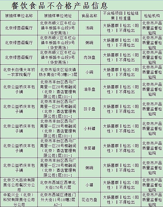 和訊網(wǎng)消息7月26日,北京市食品藥品監(jiān)督管理局發(fā)布抽檢公告,在抽檢餐飲食品的253批次樣品中,合格樣品235批次,不合格樣品18批次。其中,北京綠茵閣餐廳、北京長(zhǎng)白情大年初一農(nóng)家院餐廳、公益橋慶豐包子鋪、聚德華天控股有限公司北京地外清真小吃店、北京團(tuán)結(jié)湖峨眉酒家等多家9企業(yè)因餐具檢出大腸菌群。根據(jù)抽檢公告,北京食藥監(jiān)局在北京綠茵閣餐廳抽檢的湯碗、粥碗、肉餅盤(pán),不合格項(xiàng)目為大腸菌群,經(jīng)檢測(cè)實(shí)測(cè)值為陽(yáng)...