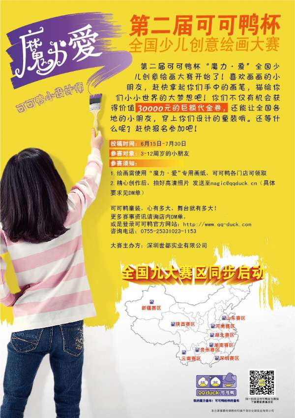 晶報(bào)訊(記者陳靜)由可可鴨童裝主辦,深圳市娜喬文化傳播有限公司、小天鵝模特舞蹈藝術(shù)團(tuán)協(xié)辦的可可鴨首屆形象代言人活動(dòng)將于10月30日拉開帷幕。據(jù)了解,獲得冠亞季軍的小朋友將被授予“可可鴨原創(chuàng)設(shè)計(jì)師品品牌形象代言人”榮譽(yù)稱號(hào),為可可鴨原創(chuàng)設(shè)計(jì)師品牌代言形象大片拍攝新品時(shí)裝周發(fā)布會(huì)。此外,獲獎(jiǎng)小朋友有機(jī)會(huì)參與可可鴨公益事業(yè)的各項(xiàng)活動(dòng)及親臨現(xiàn)場慰問,為愛傳遞。來自深圳市娜喬文化傳播公司總經(jīng)理、小天鵝模特舞...
