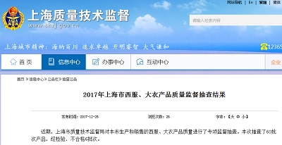 中國質(zhì)量新聞網(wǎng)訊據(jù)上海市質(zhì)量技術(shù)監(jiān)督局官網(wǎng)12月26日消息,該局近期對上海市生產(chǎn)和銷售的西服、大衣產(chǎn)品質(zhì)量進行了專項監(jiān)督抽查。本次抽查了60批次產(chǎn)品,經(jīng)檢驗,不合格6批次。本次監(jiān)督抽查依據(jù)SHCCJSGF202.1-2012《上海市西服、大衣產(chǎn)品質(zhì)量監(jiān)督抽查技術(shù)規(guī)范》、GB18401-2010《國家紡織產(chǎn)品基本安全技術(shù)規(guī)范》、GB/T5296.4-2012《消費品使用說明第4部分:紡織品和服裝》、...