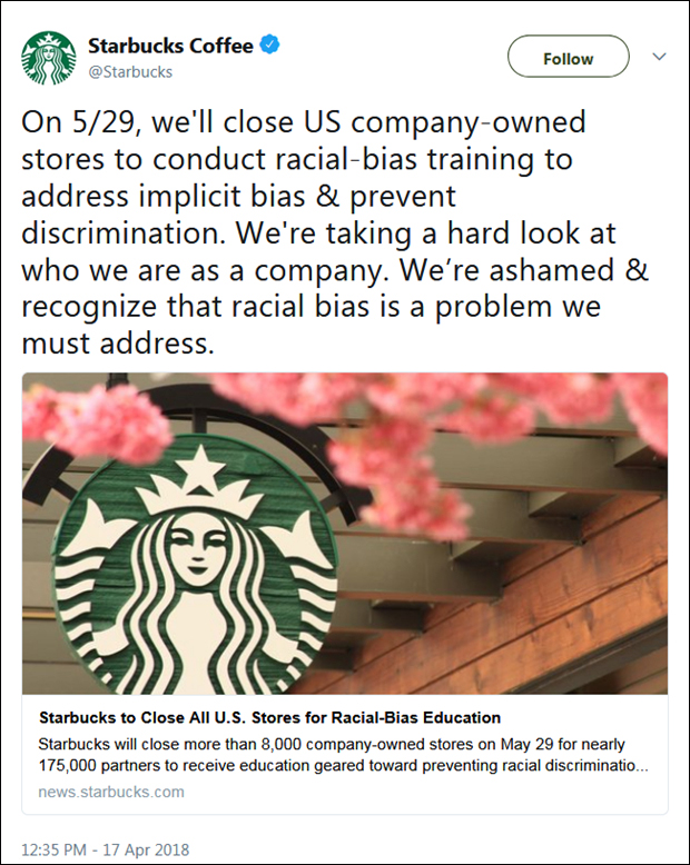 星巴克將展開反種族歧視培訓 停業(yè)半天損失約2000萬美元