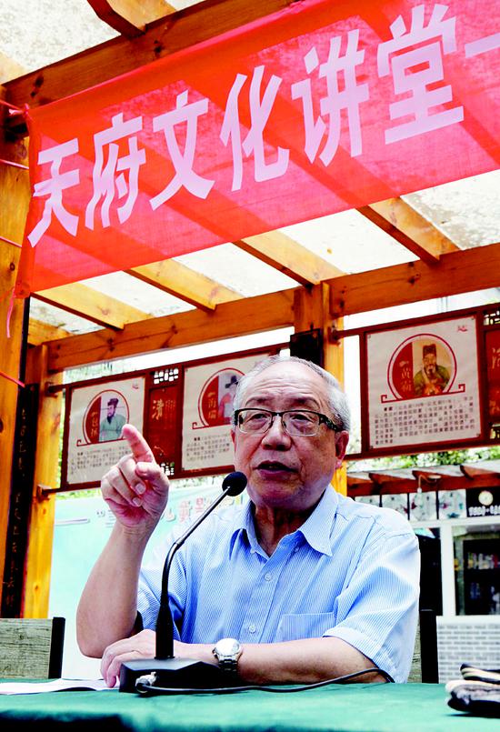 成都大學(xué)文新學(xué)院的譚平教授正在介紹天府文化研究院10月11日,專門從事天府文化研究的學(xué)術(shù)機構(gòu)——天府文化研究院掛牌成立。其位于成都大學(xué)圖書館二樓,占地近300平方米,共11間辦公室,其中,會議室、辦公室、資料室等功能分區(qū)明顯。交子、縱目人面具……在圖書館二樓走廊的展示墻上,陳列著諸多關(guān)于天府文化的照片。作為成都大學(xué)文新學(xué)院院長的譚平,又有了一個新身份——天府文化研究院院長。今年56歲的他,1988...