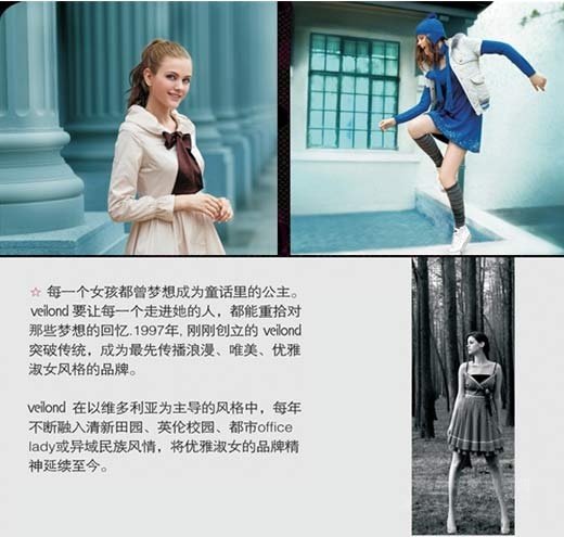 偉倫時尚有限公司,始創(chuàng)于1997年。公司從創(chuàng)建伊始,就專注于中高級女裝的設(shè)計、生產(chǎn)和銷售,并成功推出著名時尚女裝品牌veilond。